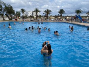 La setmana passada els alumnes de 4t d’ESO del nostre institut van anar de colònies a Mallorca. Van arribar-hi el diumenge de bon matí i van aprofitar per visitar Palma pel matí. La tarda, abans no comencessin les activitats, la van passar a les piscines de l’hotel on s’allotjaven.