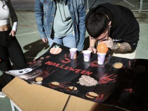 Alumnat i docents de cicles formatius han celebrat avui, plegats, la festa de la castanyada a les darreres hores lectives del dia. Els grups del cicle formatiu d’atenció a la dependència, d’integració social i educació infantil, de segon curs, s’han encarregat aquests dies de coordinar-se per dissenyar 10 tallers lúdics que han omplert les aules, la sala polivalent, el gimnàs i el pati. En acabar els tallers, s’han aplegat tots al pati per degustar les castanyes cuites amb les quals s’ha donat per finalitzat l’activitat.