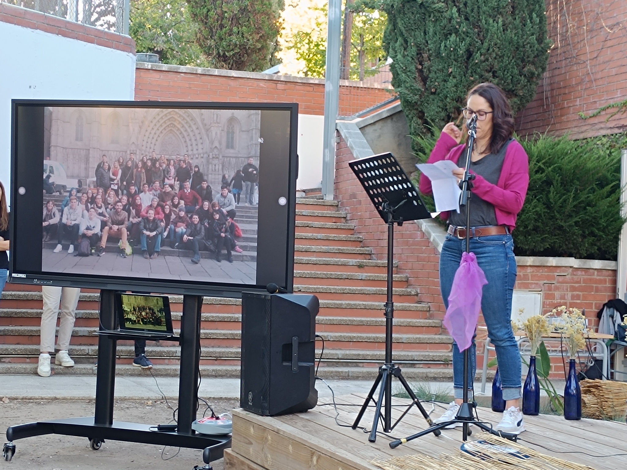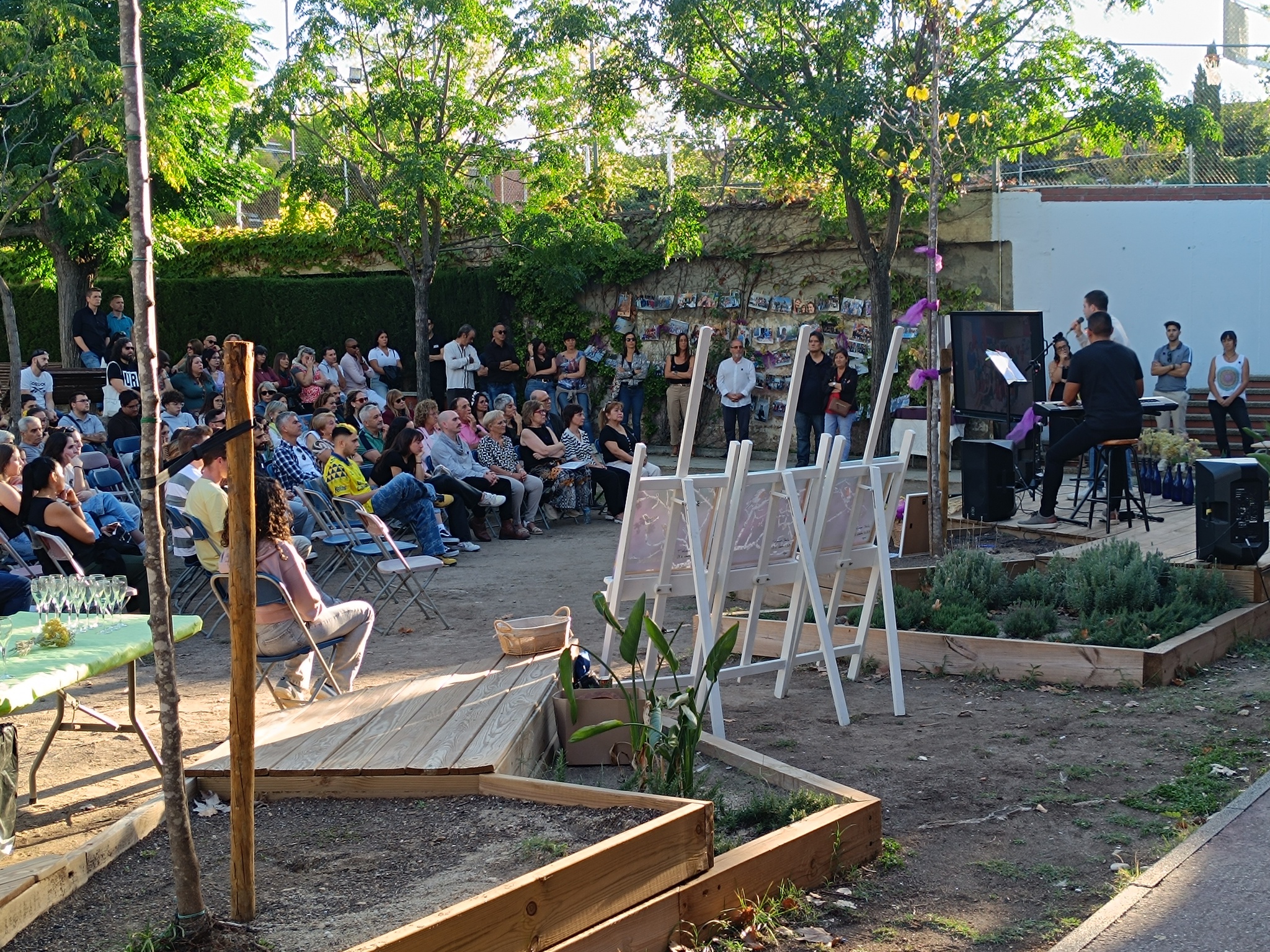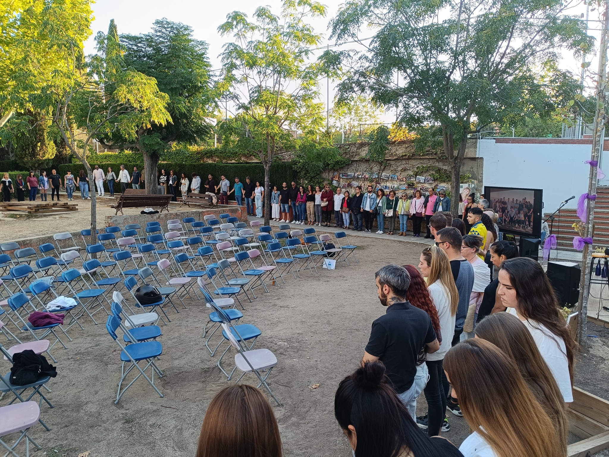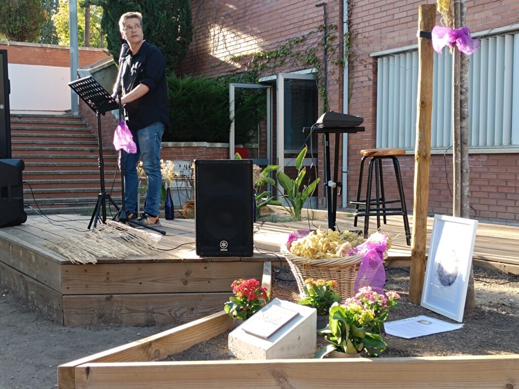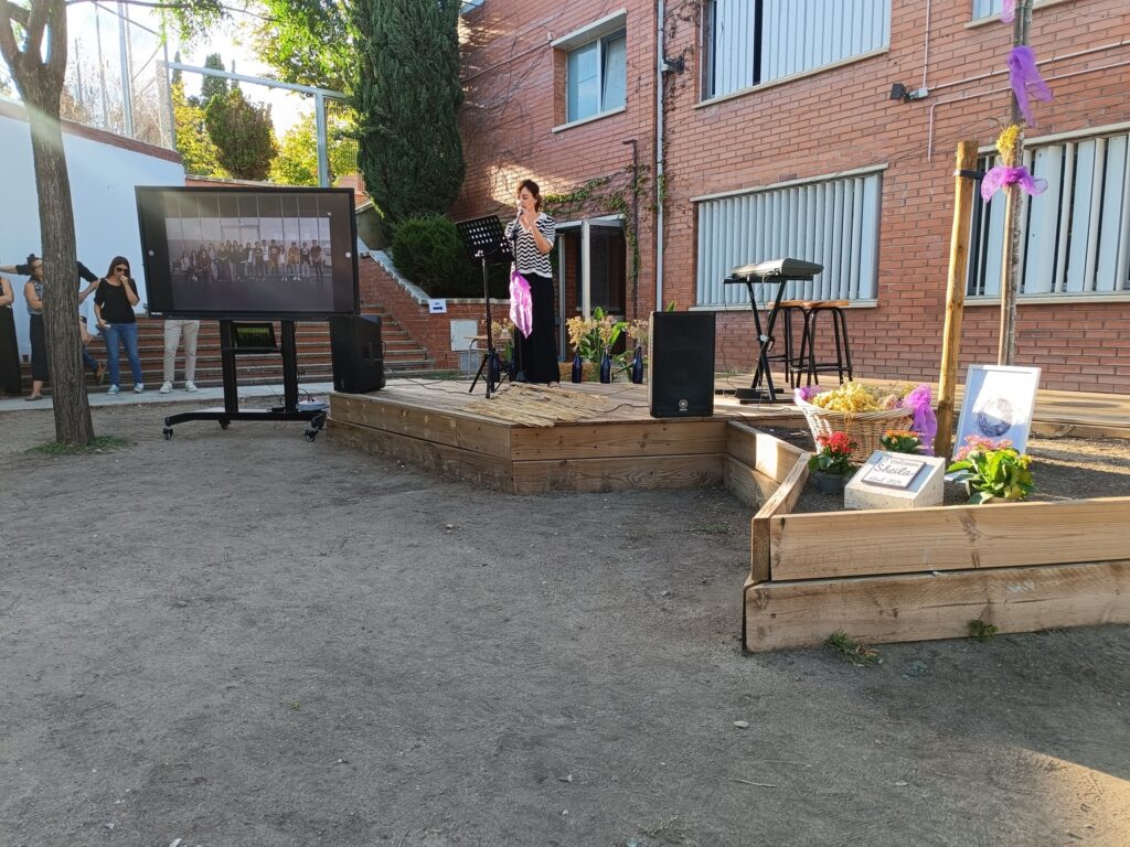 La zona arbrada de l’Ínter va acollir dissabte l’acte d’homenatge per la nostra estimada Sheila, la docent que amb 41 anys ens deixava per una mort prematura l’abril d’aquest any després d’estar vinculada a aquest centre educatiu quasi tota la vida, primer com a alumna i després com a docent d’anglès a cicles formatius. L’entorn, preparat i decorat amb imatges del seu pas per l’Ínter, va iniciar-se amb la benvinguda. Després va seguir amb els parlaments, poemes i records d’amics i companys de professió. La música de Ramon Mallofré i Fran Àvalos van posar el caliu i el sentiment amb músiques que li agradaven a la Sheila i la meditació final en rotllana va servir per conciliar-nos amb el dol i el dolor que sentim des de la notícia de la seva mort. Amèlia, la seva mare, el seu germà, José, i la seva parella, David, van fer el cor fort i van agrair la presència de tothom a l’acte i del centre educatiu que la va acollir i estimar. Per això, l’Ínter ha reservat un espai en aquesta zona arbrada amb una placa que ens recordarà per sempre el seu nom i s’ha plantat un arbre que començarà a brotar a la primavera.