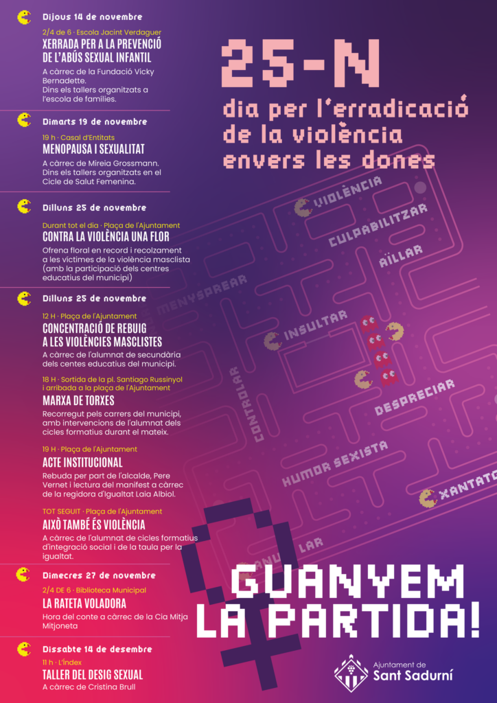 L’Institut Intermunicipal del Penedès participa dilluns en la commemoració del Dia Internacional d’Eliminació de la Violència de Gènere, en diversos dels actes organitzats per l’Ajuntament de Sant Sadurní d’Anoia. L’alumnat d’ESO i Batxillerat implicat en la Comissió d’Igualtat del centre llegirà un manifest a la plaça de la vila, a les 12 del migdia, conjuntament amb alumnes dels altres centres del municipi i l’alumnat de Formació Professional participarà en la marxa de torxes, que està previst arrencar a les 18:00 de la tarda des del centre educatiu. Al final de la marxa es farà un acte institucional i l’activitat “Això és violència” a càrrec de l’alumnat del CFGS d’Integració Social i de la Taula per la Igualtat, a la plaça de la vila.