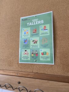 La Comissió de Funcionament i Normativa del Consell d’Alumnes de l’institut, amb l’ajuda i disseny final de l’Aura Gumà, coordinadora COCOBE del nostre centre i professora d’Educació Visual i Plàstica, han elaborat una sèrie de cartells amb la normativa dels diferents espais de l’institut. A les fotografies en teniu una mostra: