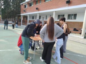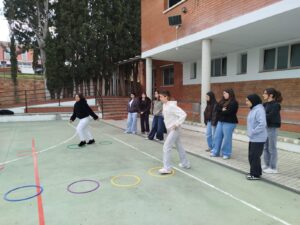 L’alumnat del segon curs del CFPM d’Atenció a la dependència va posar en pràctica ahir diverses activitats per treballar les destreses socials al pati. L’alumnat havia dissenyat diversos jocs amb els quals van poder gaudir l’alumnat del CFPS d’Administració i Finances, de primer i segon curs.
