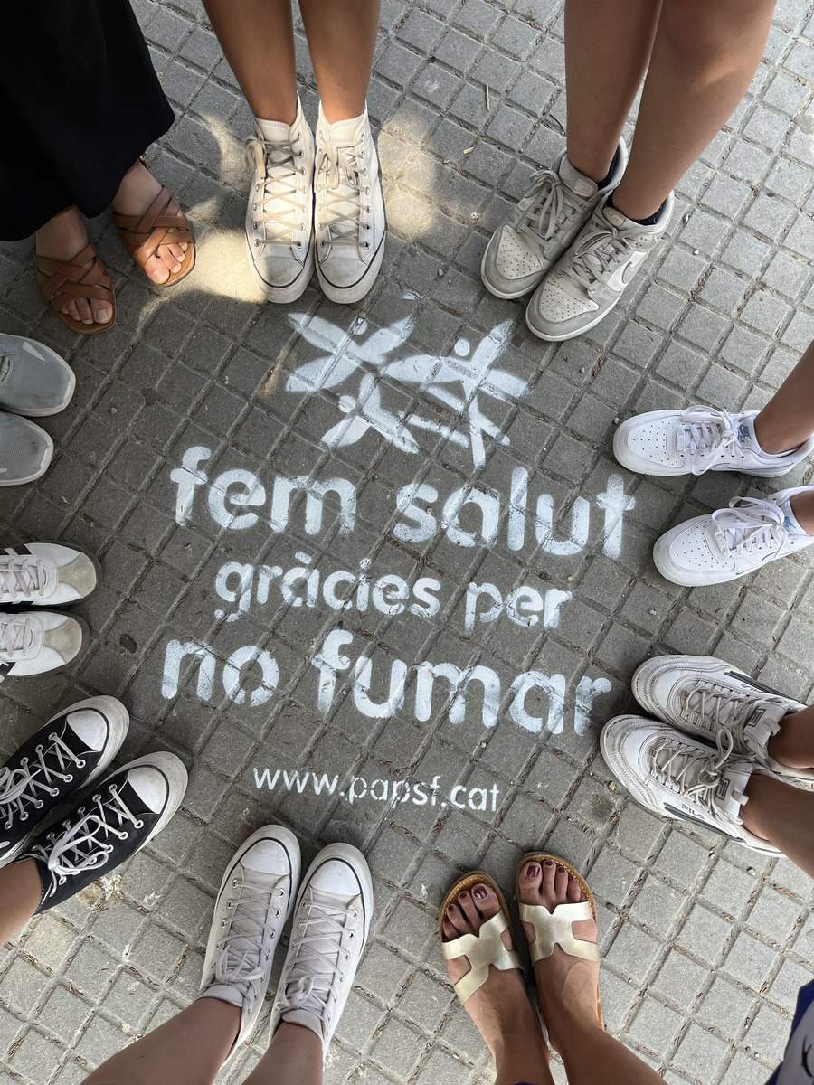 Per finalitzar la jornada es van pintar els lemes FEM SALUT, GRÀCIES PER NO FUMAR, a diferents espais de la vila propers al nostre centre educatiu. Per fer aquesta activitat, hem comptat amb la col·laboració de l’Ajuntament de Sant Sadurní d’Anoia i del Programa Salut-Escola del CAP Sant Sadurní.
