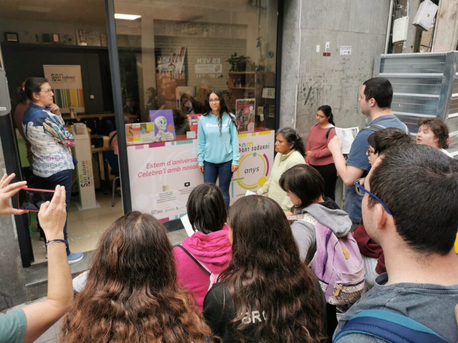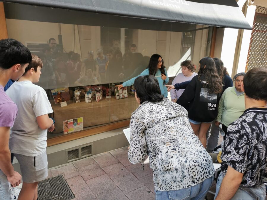 Avui un grup d’alumnes de 3r d’ESO format pel Bernat Martín Ros, l’Adrián Acedo Gil, l’Eloi Centelles Cruces, la Sanae Moaouia, l’Àngela Pardo Perez i la Daniela Osuna González, hem acompanyat els usuaris de la Fundació Mas Albornà a fer una ruta guiada per Sant Sadurní d’Anoia amb l’objectiu de poder veure els quadres del projecte SolidArt que són exposats als aparadors d’una colla de botigues membres de Som Sant Sadurní. Durant el recorregut, hem fet una breu explicació del projecte SolidArt i també de les obres exposades. Ha estat per tots una una activitat i una experiència molt enriquidora que repetirem la setmana que ve amb un altre grup.