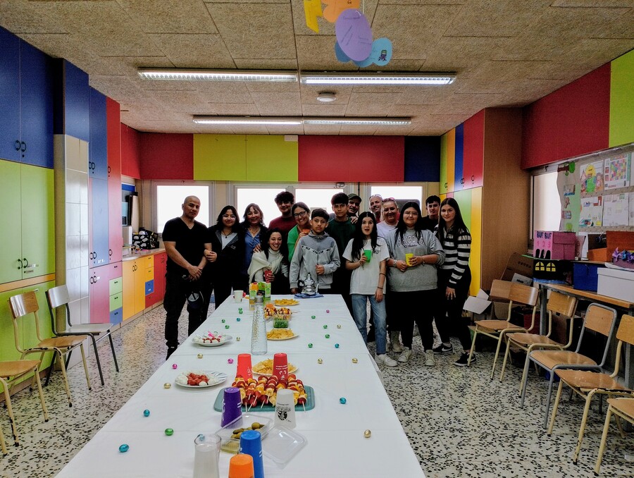 Els alumnes de l’aula d’acollida i les seves famílies van fer una trobada a l’institut per cloure una situació d’aprenentatge en la qual feia temps que els alumnes hi treballaven. Aquesta situació d’aprenentatge els va permetre treballar moltes qüestions lingüístiques i, també, alguns Objectius de Desenvolupament Sostenible (ODS) com la petjada de carboni i la compra de proximitat i de temporada.