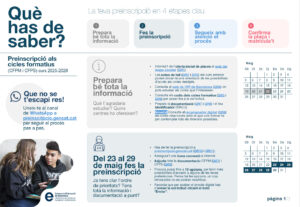 INFORMACIÓ I CALENDARI DELS PROCEDIMENTS DE PREINSCRIPCIÓ I MATRÍCULA