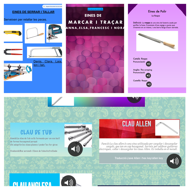 Aquesta setmana hem utilitzat la aplicació Pages i Tasques per fer un treball d’eines i explicar-les per famílies. Cada grup feia una o dos famílies (eines de protecció, de traçar i marcar, percusió, etc…) Cada alumne feia una fitxa i utilitzaven l’eina “Col·laboració” i posar-ho en un sol document Pages. Fet per Arnau Comerma