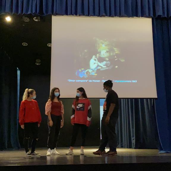 En aquesta activitat en grups de 4 membres, han hagut de crear un diàleg representant 4 postures diferents: una persona del neoclassicisme, una persona del romanticisme, una persona del realisme i una persona de l’impressionisme es troben davant d’una obra d’art en una exposició internacional. Quines perspectives mostren? Quins ideals defensen? Què critiquen?