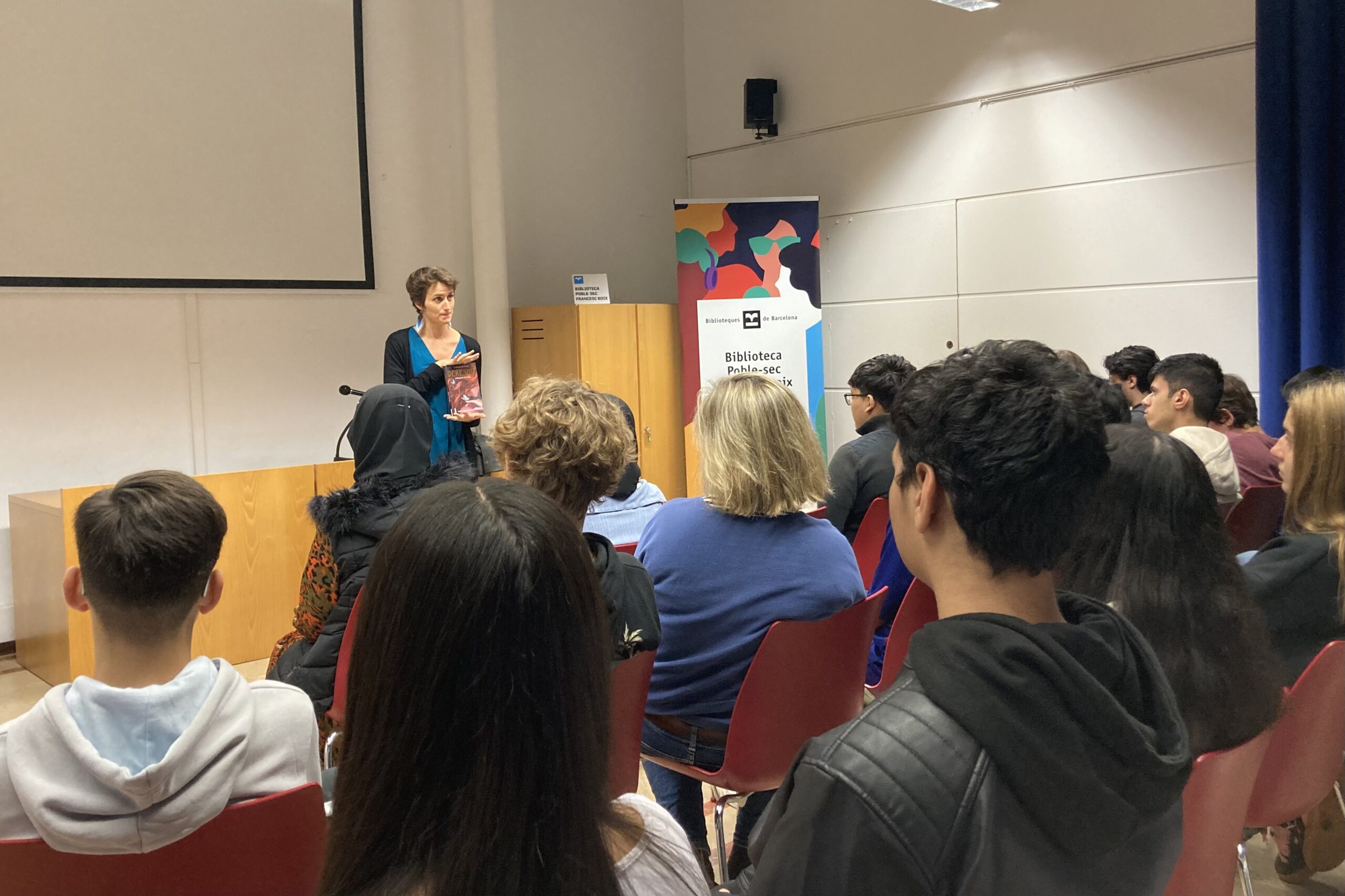 Després de la presentació de ‘Bereshit’ al Festival 42 amb presència de l’autora, la Biblioteca del Poble-sec – Francesc Boix ha deixat un exemplar en préstec d’aquesta novel·la de Teresa Muñoz a tot l’alumnat de 3r d’ESO. Ara tindran unes setmanes per llegir-lo abans que la dinamitzadora del programa “Lectures explosives”, Inés Macpherson, vingui a l’institut per parlar de què els ha semblat el llibre.