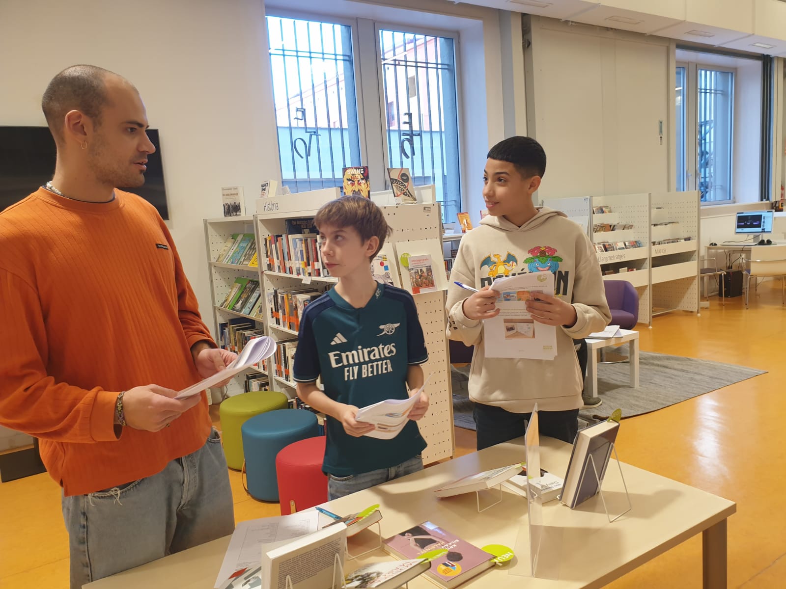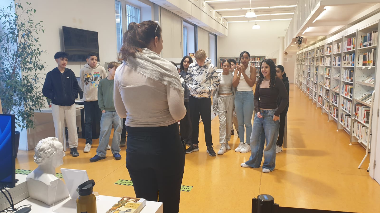 Die Schüler und Schülerinnen des Wahlfachs Deutsch der Klassen 1 und 2 der Sekundarstufe gehen auf Entdeckungsreise! Gestern waren wir in der Bibliothek des Goethe-Instituts, wo wir eine “Bibliotheksrallye” zwischen Büchern, Videos und Zeitschriften gemacht haben.