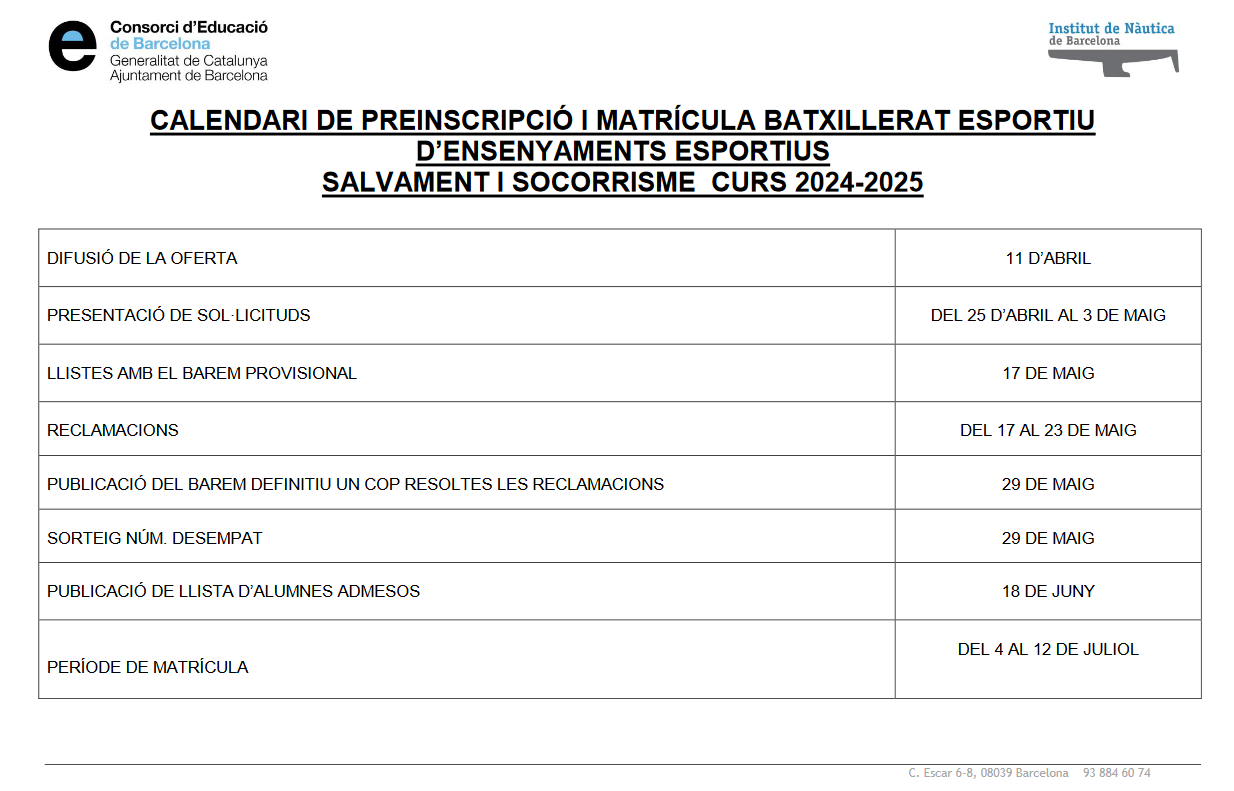 Batxillerat Esportiu Salvament i Socorrisme