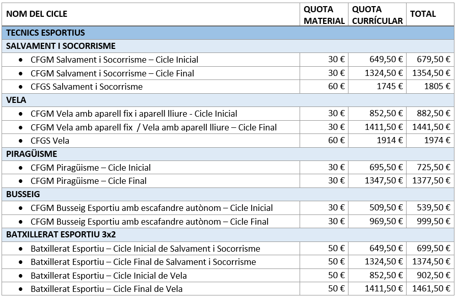 Cicles Formatius d'Esports i de Manteniment de vaixells