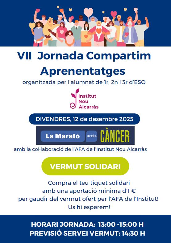 Agraïm a tota la comunitat educativa de l’institut: alumnat, professorat, AFA i familiars, per la vostra implicació i participació solidària. Entre tots hem aconseguit que hagi estat una gran jornada, posant en valor la feina de l’alumnat i promovent el compromís i la cooperació.