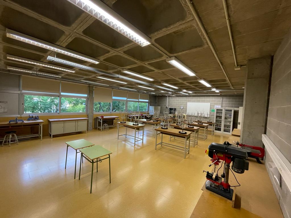 Com veieu, disposem de 17 aules ordinàries, totes elles dotades de pissarra de guix i pissarra digital. També tenim 3 aules d’especialitat com són la de música, la de visual i plàstica i la d’idiomes. Així mateix tenim 3 aules d’informàtica, 3 laboratoris, de física, de química i de biologia, així com un gimnàs-sala polivalent i una biblioteca.