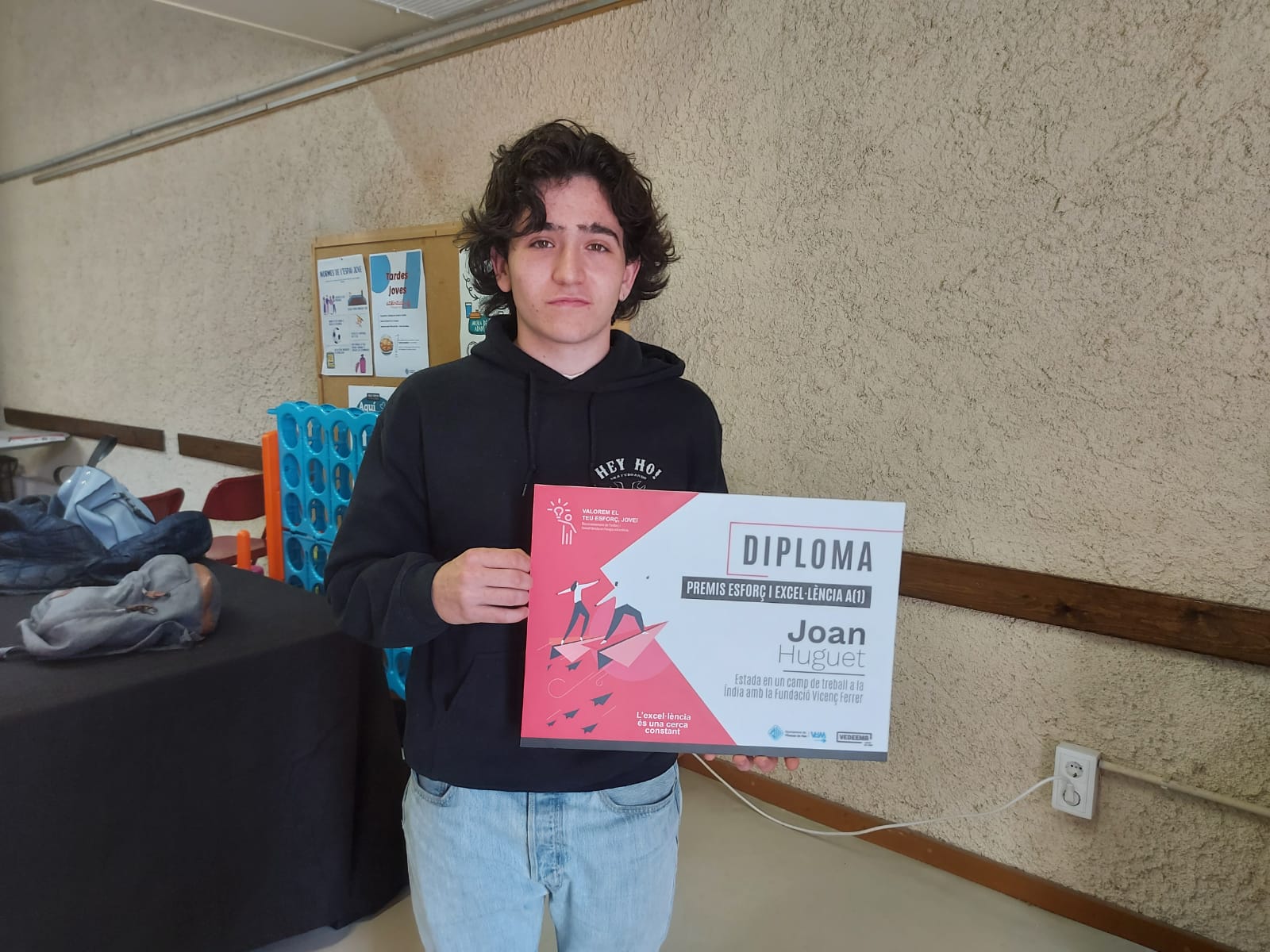 Podeu veure la fotografia col·lectiva del lliurament dels premis, i el nostre exalumne Joan amb el seu diploma. La Natàlia, malauradament, per motius personals no va poder assistir a l’acte de lliurament dels premis.