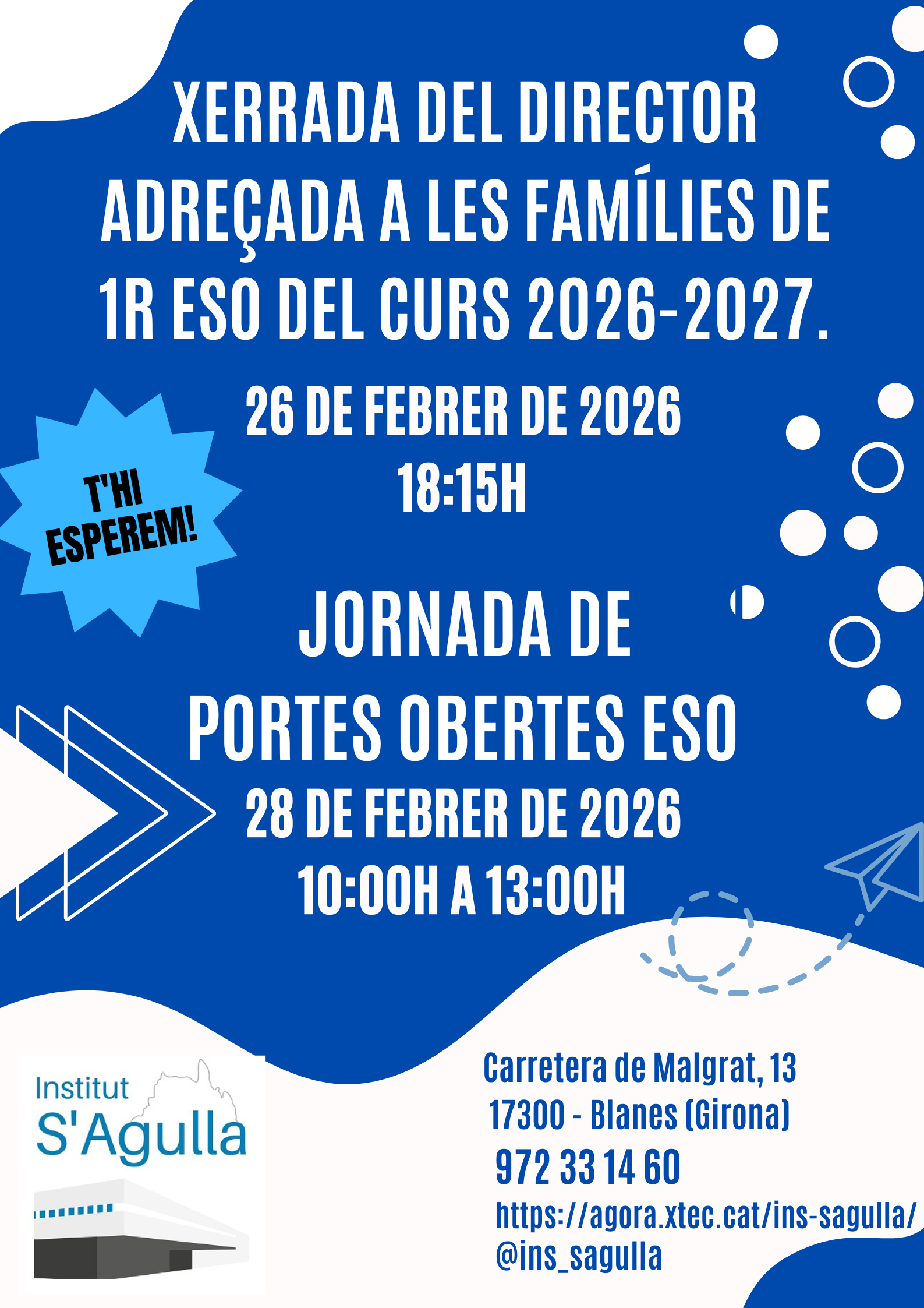 27/02/26Aquí podeu veure la presentació que va fer el director a la reunió adreçada a les famílies de 6è de primària: