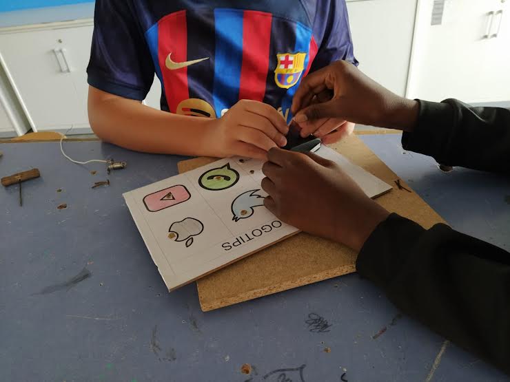 Alumnes de 2n d’ESO construint el joc connecta: