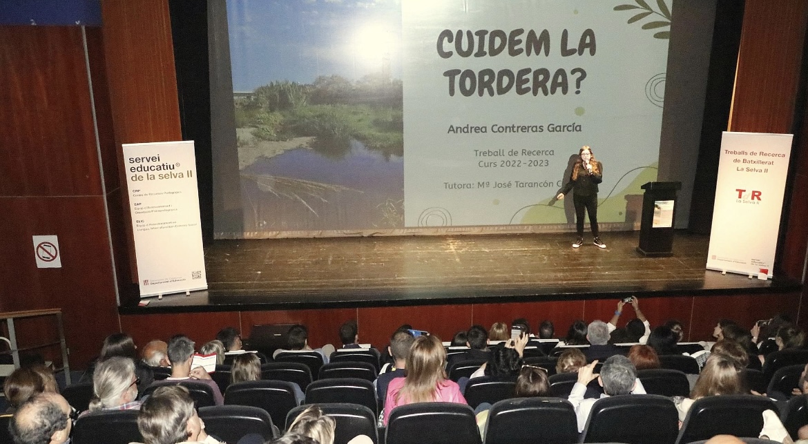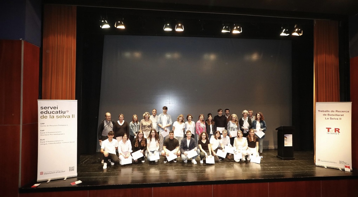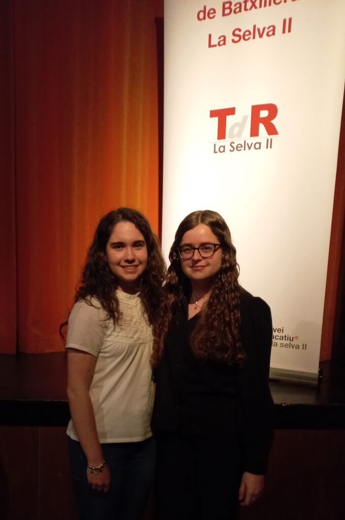 El passat divendres 19 de maig les nostres alumnes de segon de batxillerat, Emma Aguilera i Andrea Contreras van participar a l’11a Mostra de Treballs de Recerca de Batxillerat de la Selva II al Teatre de Blanes, presentant els seus excel·lents treballs.