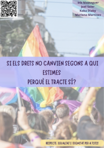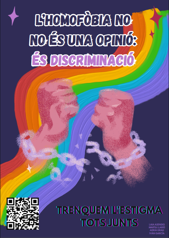 L’alumnat de primer curs del cicle d’Integració Social ha dut a terme recentment diverses campanyes de sensibilització i conscienciació sobre la realitat i els drets del col·lectiu LGTBIQ+. Aquestes iniciatives han tingut com a objectiu principal promoure el respecte, la igualtat i la convivència, així com combatre els prejudicis i la discriminació que encara pateixen moltes persones LGTBIQ+.