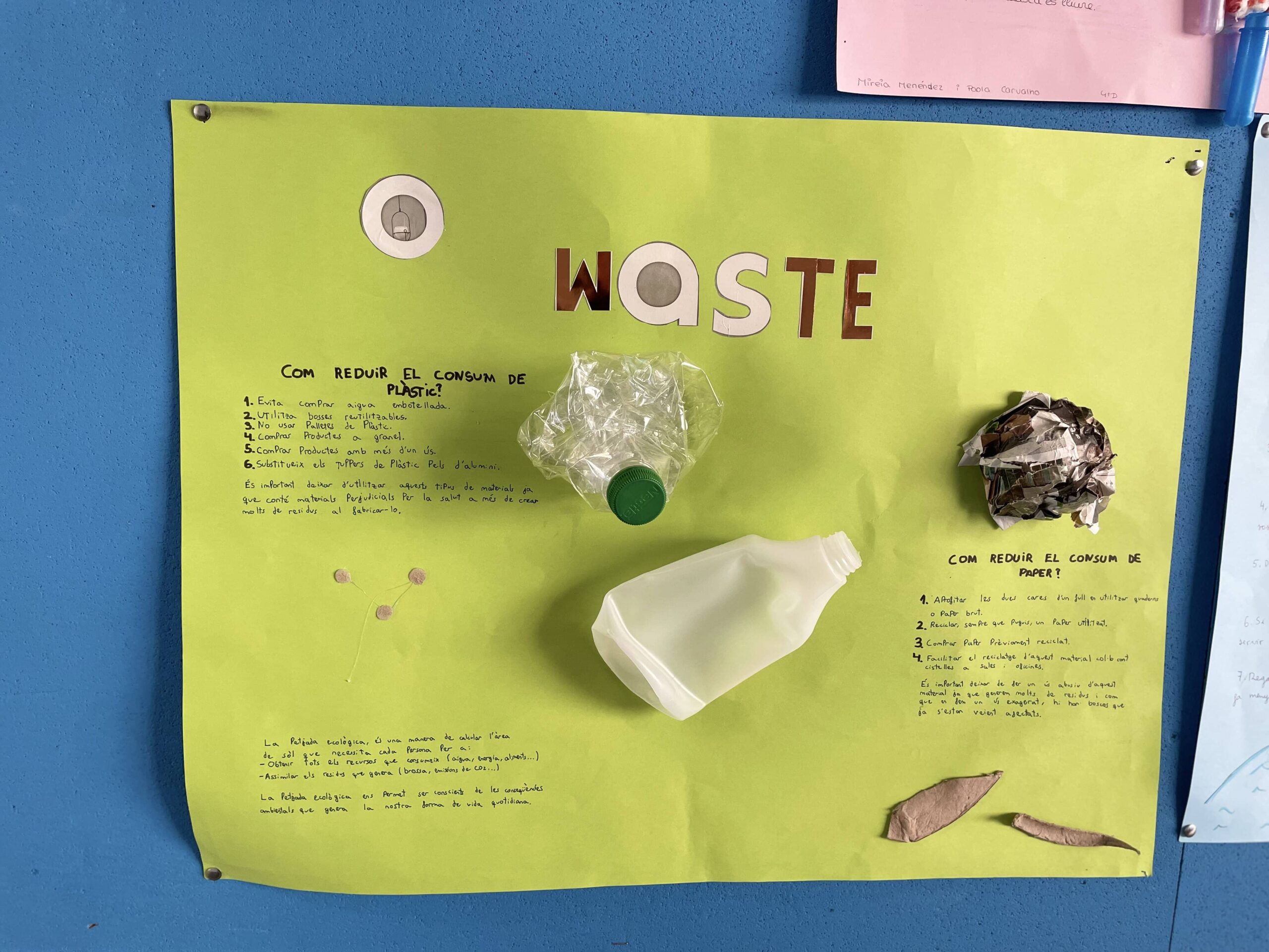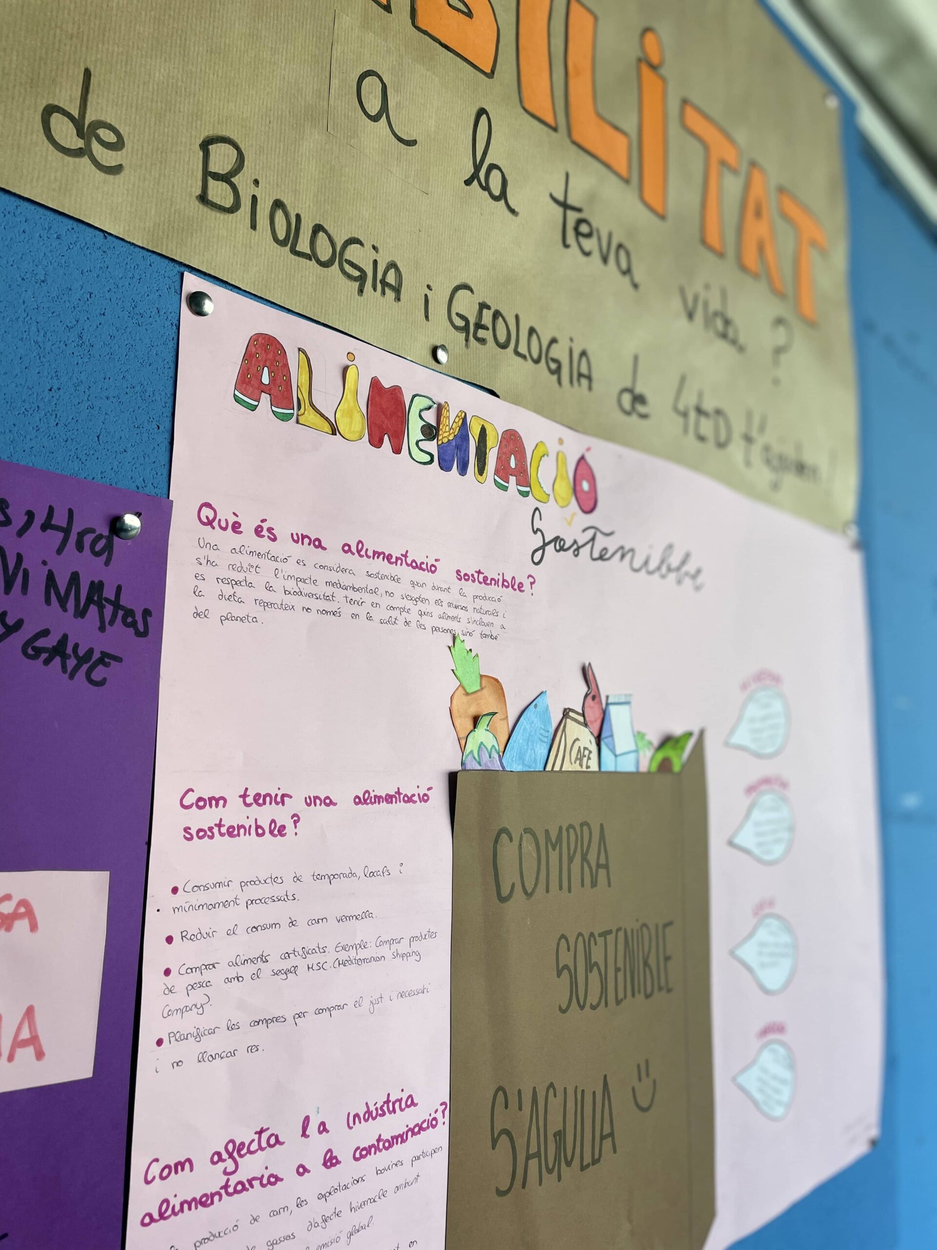 Dins el marc de la Setmana de la Ciència, l’alumnat de biologia i geologia de 4t d’ESO D ha realitzat murals per treballar i conscienciar sobre la sostenibilitat. A través d’aquests treballs han après que amb petits gestos quotidians podem dur una vida més sostenible.