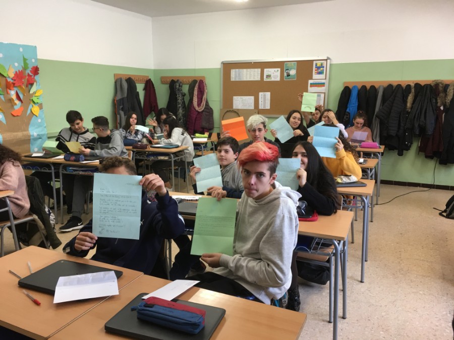 De l’altra, l’alumnat de 1r d’ESO va entregar a les Tutories de 3r les cartes personals que van elaborar des de la matèria de Català als seus tutors/es del Projecte Buddy. Tot i ser una activitat de la matèria, cadascú hi va posar moltes ganes a l’hora de pensar què volien escriure als seus respectius tutors/es (aficions, notes del trimestre i alguna anècdota són alguns dels temes tractats). Les cartes van ser molt ben rebudes per l’alumnat de 3r. Tant és així que per iniciativa pròpia van contestar les cartes!
