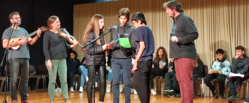 A segon ens esperaven al Casal d’Avis l’Anaís, el Cristian i el Marc de corrandes. Ells han sigut els ponicanos. El nostre alumnat ha superat totes les proves i realment han crescut moltíssim com a glosadors. Ens ha encantat saber animar al públic: alumnes de 6e del Turonet i del Purificació que s’han atrevit a sortir a glosar. Ahir els hi van fer una masterclass de glosa i queda clar que ha donat els seus fruits. Esperem que amb aquest projecte hàgim sembrat el compromís amb la glosa com a part de la cultura popular. Garrotin, nyacres, corrandes feien sonar les quartetes de presentació, la prova d’objectes, temes, combat, peu forçat,.. i un fort aplaudiment! Gràcies corrandes.