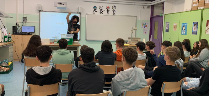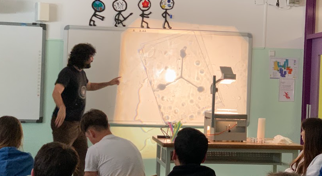 Avui ens ha visitat el Pol Landman d’Explorium dins els projecte de Clepsidra que estem fent a 3r. Hem experimentat amb les bombolles i ens hem meravellat amb les matemàtiques que contenen! Hem pogut veure de ben a prop com les bombolles defineixen superfícies mínimes i formen angles de 120º. Gràcies, Pol per transmetre’ns la teva passió per la Ciència. Seguirem amb les teves idees per fer els pòsters científics finals.