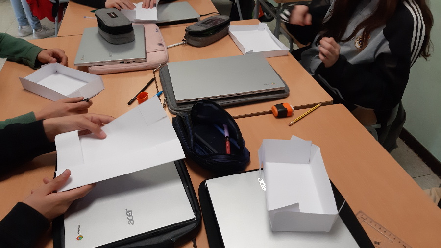 Ja estem arribant a l’equador del projecte cientificotecnològic. L’alumnat de 2n d’ESO encara el repte de crear una espelma de 100 cm3 el seu embolcall, i per això hem hagut d’estudiar diferents cossos geomètrics, el seu volum i la seva àrea. Com ho hem fet? tocant moltes matemàtiques! amb cubs multilink, comprovant el volum de la piràmide amb arròs i el de l’esfera amb aigua. També hem investigat què passa amb el volum d’una capsa cerada amb un mateix full de paper però de bases i alçades diferents.Ens endinsem en el món de la geometria 3D per explorar-lo a fons i treure’n tota la creativitat de cada grup. Tot plegat, Made by SiX!