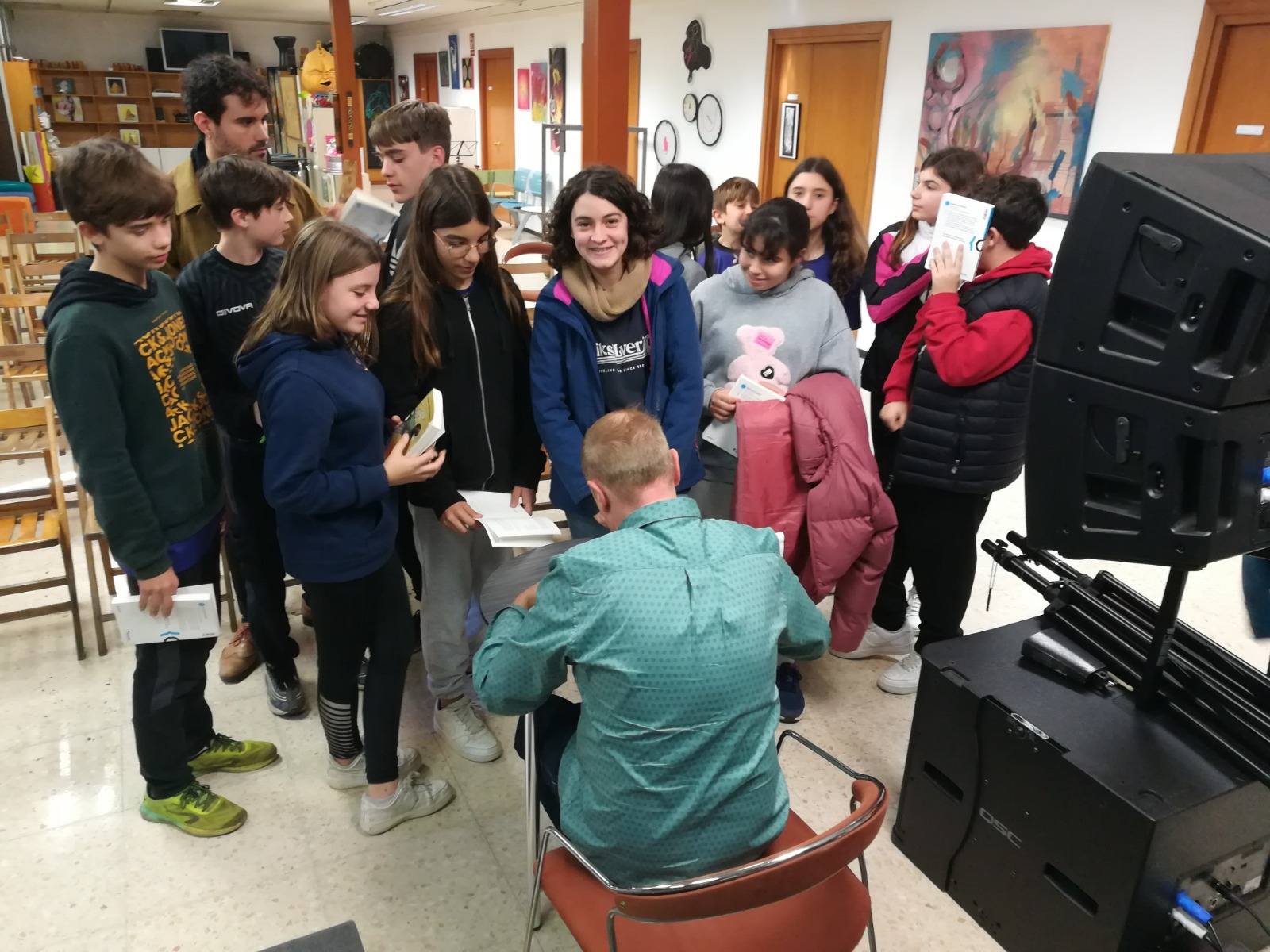 Dijous 14 de desembre els quatre grups de 2n d’ESO van conèixer l’autor d’Operació Kyoto, el thriller que han llegit i comentat setmanalment a l’aula durant el primer trimestre. Àngel Burgas, un escriptor reconegut i de llarga trajectòria en l’àmbit de la novel·la juvenil, va explicar de manera molt amena com havia planificat la novel·la, així com molts dels secrets que amaga. Burgas va confessar que és un lector devot dels clàssics del segle XIX, va afirmar que sempre treballa en dues novel·les alhora i va respondre les nombroses preguntes que li van fer els alumnes.