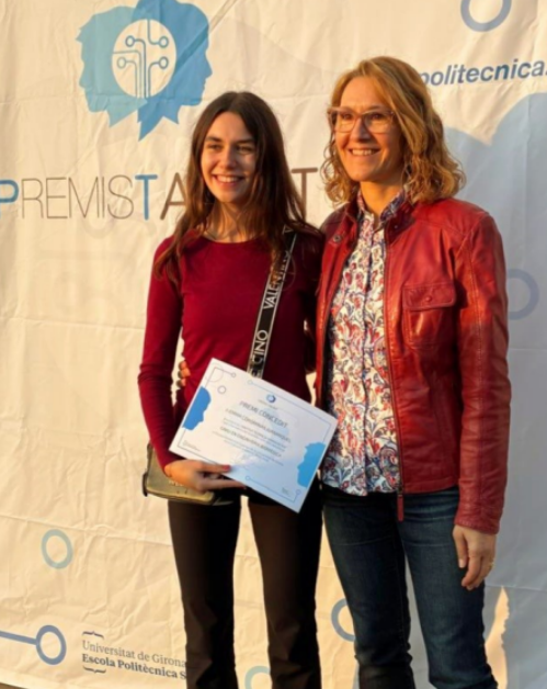 La directora de l’Escola Politècnica Superior, Maria Àngels Pèlach, va entregar els premis que atorga el Patronat i que està dotat amb 1.000 euros per a l’estudiant. L’acte va tenir lloc al pati exterior de la facultat Politècnica de la UdG. Enhorabona, Emma!
