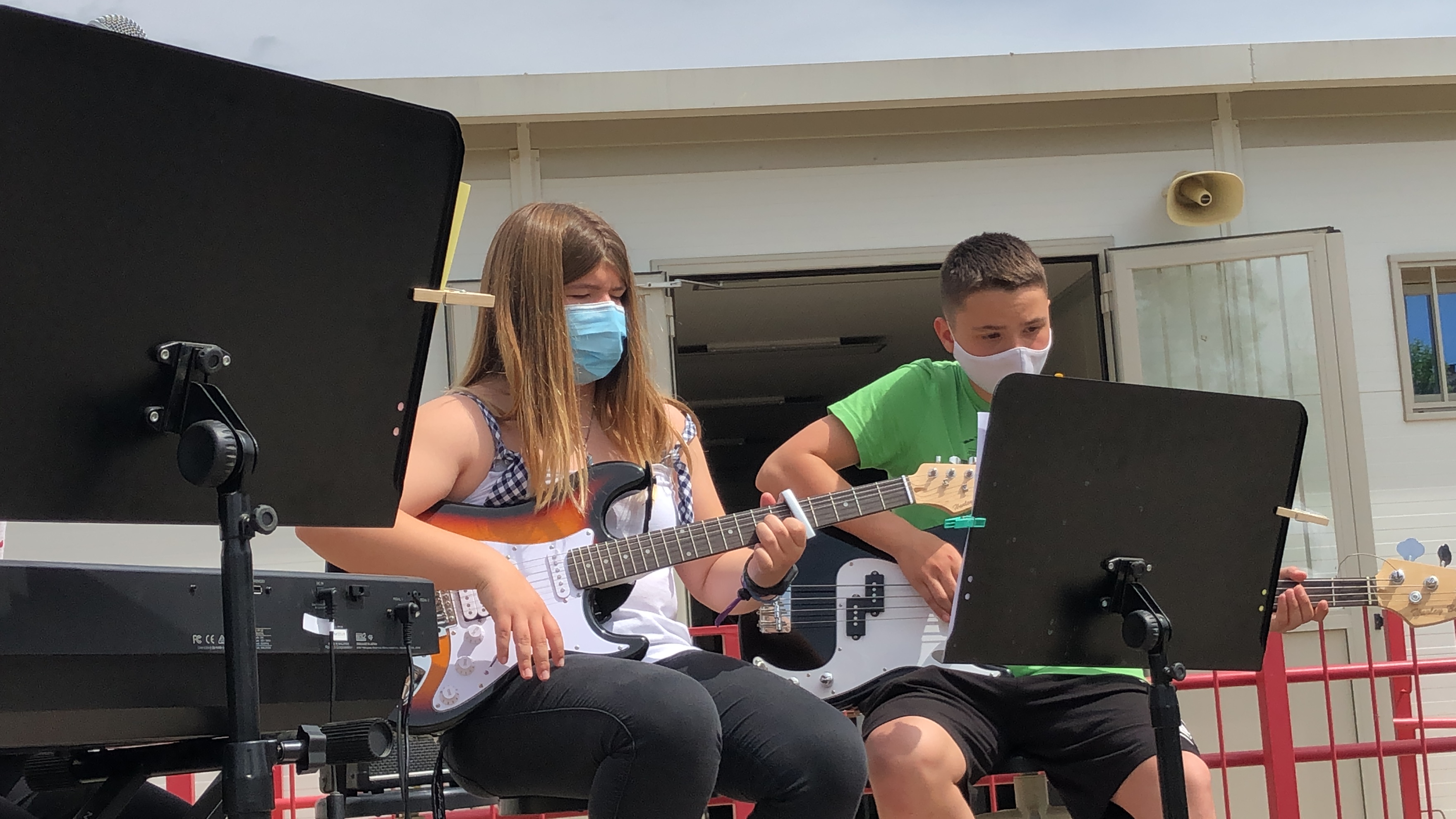 Penúltim dissabte de maig. El pati de l’INS de Sarrià de Ter es va omplir de música i d’il·lusió amb la primera matinal de combos del nostre centre. Va mostrar nois i noies que van saber vèncer la vergonya i la mandra i que van decidir posar-se al servei de la música. Va ser una hora i mitja de concert en què van desfilar onze combos formats en el marc del projecte Rockin’.