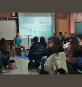 Han pogut escoltar un concert de música francesa a càrrec de la cantant, Cecilia Debergh, acompanyada d’una guitarra, en el qual han participat de manera activa seguint les indicacions de la vocalista, han assistit a la projecció d’una pel·lícula en versió original subtitulada i finalment han menjat crêpes com diu la tradició, i com es continua fent a França avui en dia, per celebrar la candelera amb una mica d’antelació (la candelera és el 2 de febrer).