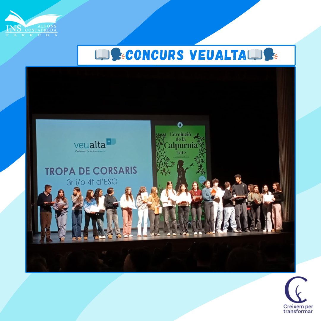 El divendres 6 de febrer alguns dels nostres alumnes van anar al 𝗧𝗲𝗮𝘁𝗿𝗲 𝗔𝘁𝗲𝗻𝗲𝘂 𝗱𝗲 𝗧à𝗿𝗿𝗲𝗴𝗮 🎭 i van participar en el concurs 𝗩𝗲𝘂𝗮𝗹𝘁𝗮, un projecte de la Fundació Enciclopèdia Catalana 📚 que té la missió de promoure, per mitjà de la lectura en veu alta, la literatura i la llengua catalanes 📖🇦🇩 entre els […]