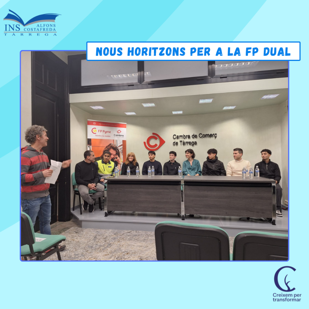 El 14 de novembre, l’INS Alfons Costafreda va estar present a la Jornada de visibilitat de la Formació Professional DUAL realitzada per la Cambra de Comerç de Tàrrega va reunir escoles, empreses i joves en una jornada plena d’idees i inspiració.