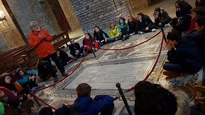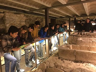 Ahir van iniciar la seva estada amb la descoberta de Planoles on van haver d’aprendre a orientar-se. I avui, de Planoles a Ripoll en tren, per visitar el Monestir de Ripoll i la seva famosa portalada. A l’església del monestir han visitat també les tombes de Guifré el Pelós i de Ramon Berenguer IV. Dins el mateix monestir hi ha el conjunt funerari de la Necròpolis de Santa Maria que conté tombes de diferents segles i algunes amb més de 1400 anys d’antiguitat.