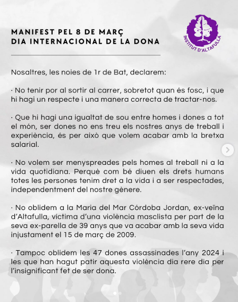 Avui, a l’hora de tutoria, ens hem reunit per llegir el manifest que les alumnes de Batxillerat han preparat per commemorar el 8M, Dia Internacional de la Dona. 💜
