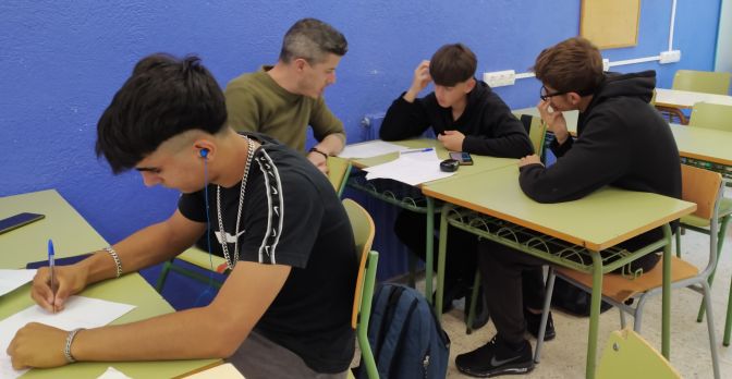Així, doncs, durant els mesos d’abril i maig els alumnes de 4t D José Manuel Guerrero Roldan (JM) i Iker Carmona Garcia han dedicat diverses hores a idear una cançó que posa en paraules les seves opinions, somnis, pors, anhels, preocupacions… dedicació que s’ha vist recompensada quan han viscut, el dimecres d’aquesta setmana, l’experiència enriquidora, única i engrescadora d’enregistrar en un estudi professional el text que prèviament havien escrit. Des del primer dia, el taller ha suposat una aventura que els ha permès treballar la llengua, la literatura, la constància, els desigs, les emocions, la pròpia experiència vital…i, sobretot, posar en paraules tot el que anaven descobrint i reflexionant. Ens ho explica el JM quan diu “gràcies al rap vaig ser capaç d’obrir els ulls […] no volia seguir així i vaig escapar d’aquella cova”.