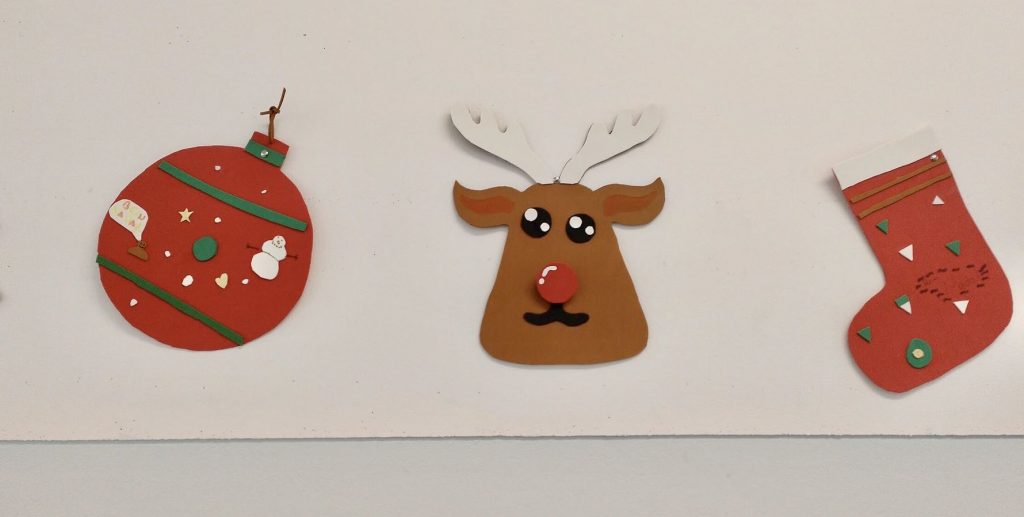 Durant la darrera setmana els alumnes de 1r d’ESO han deixat de fer les tasques habituals a la matèria d’Educació Visual i Plàstica per tal de decorar el centre amb motius nadalencs. En aquesta ocasió han utilitzat unes plantilles amb goma Eva que per grups han retallat i enganxat en diferentes formes i d’una manera lliure. Hem comprovat les seves destreses a l’hora de fer activitats manuals així com el seu entusiasme per realitzar-les.