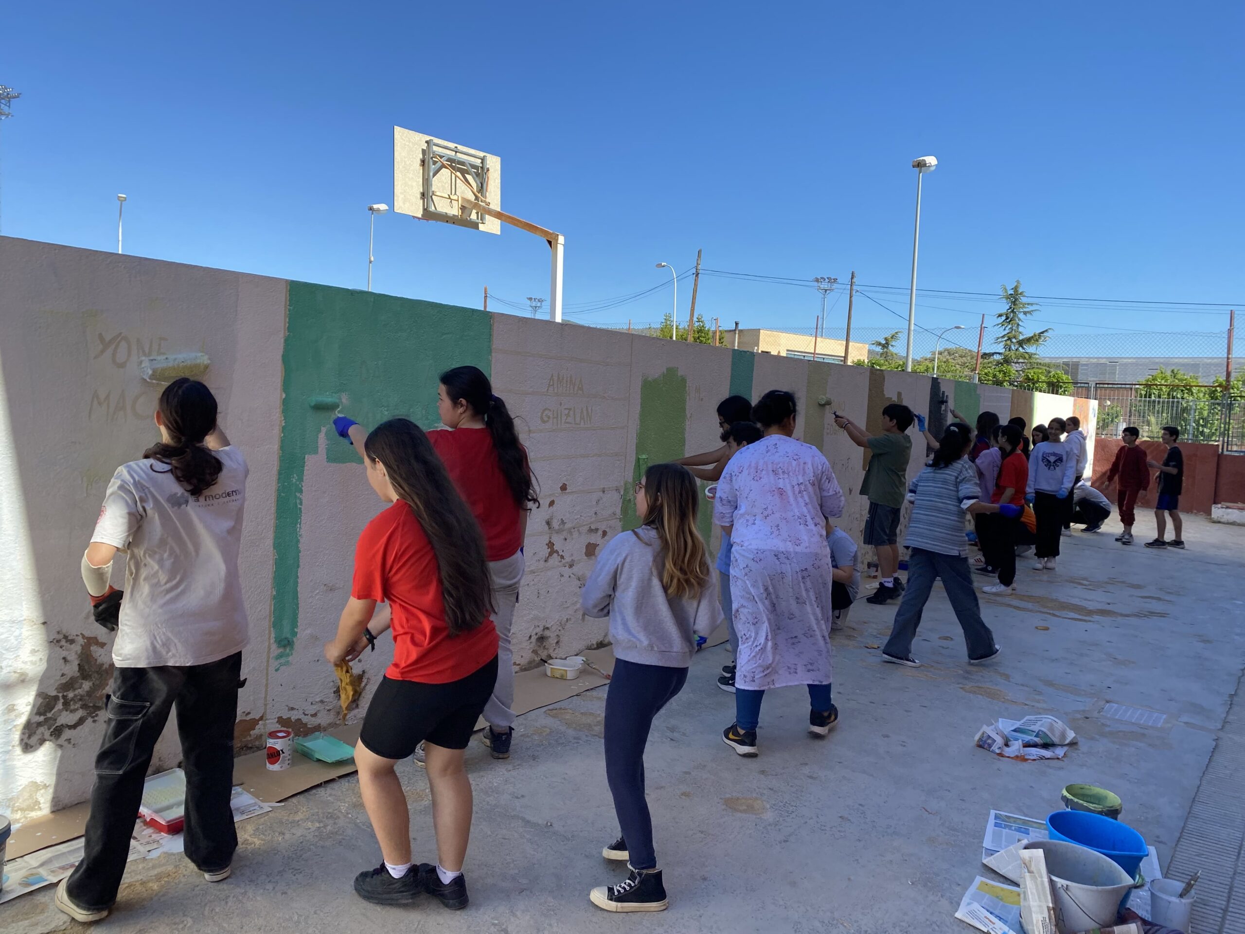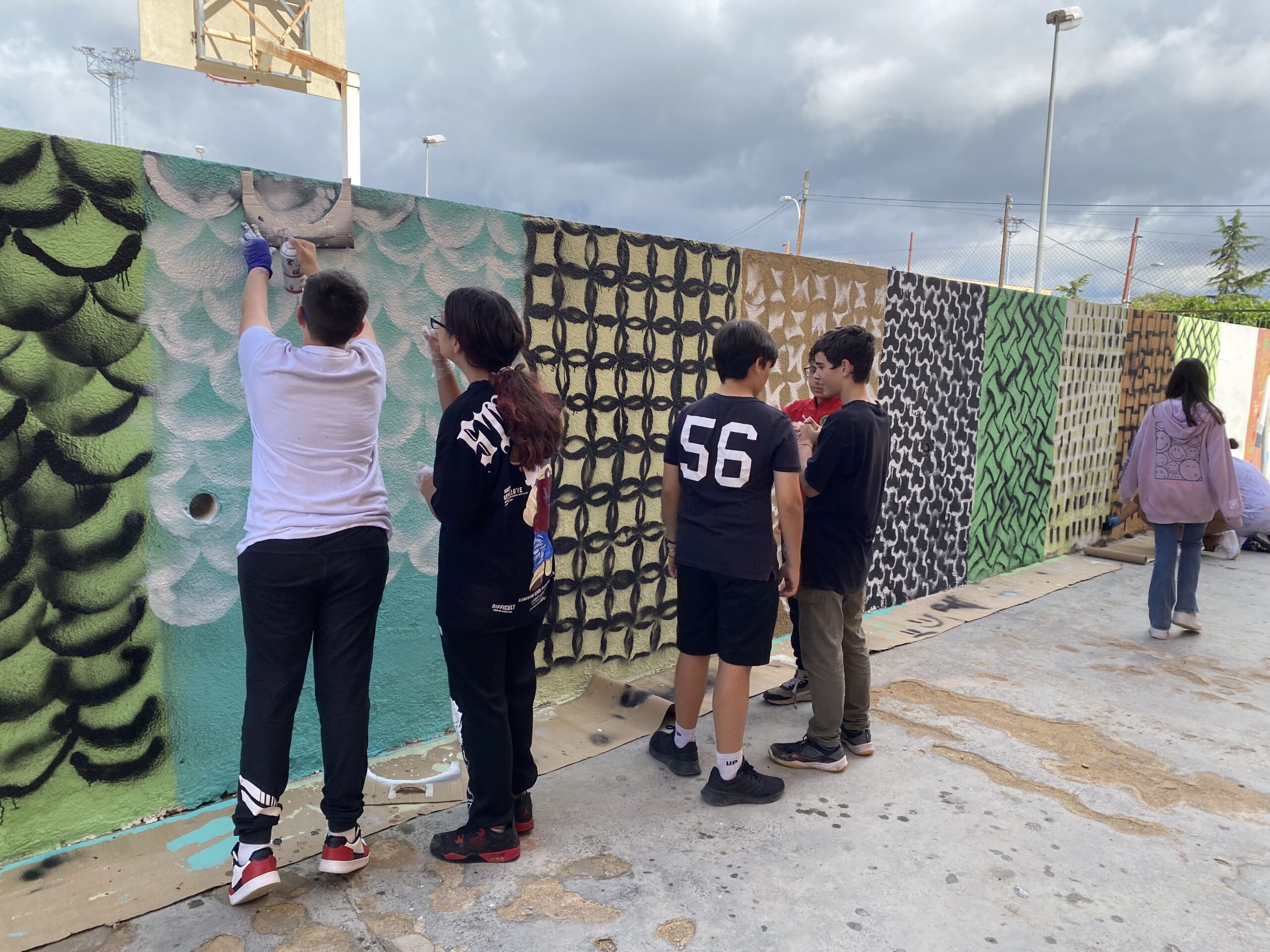 Des de l’optativa de Decoració i Muralisme de 1r d’ESO hem acomiadat el curs amb un gran mural.