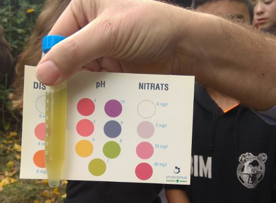 Després, vam realitzar el mateix procediment per calcular el grau d’oxigen amb altre tipus de pastilla i el resultat va ser que aquella aigua tenia un 0.4% d’oxigen.