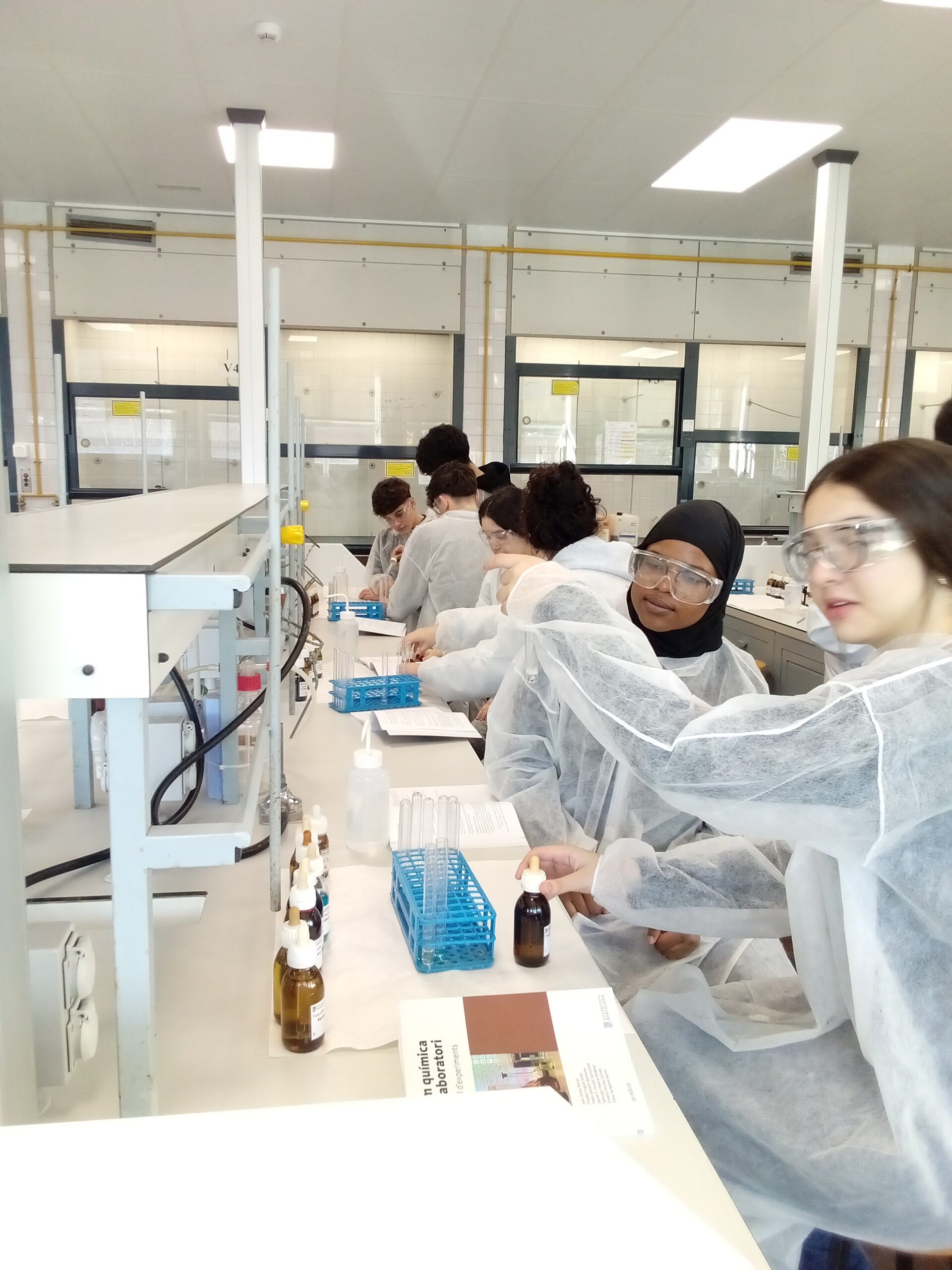 El passat 22 de gener, l’alumnat de 1r i 2n de Batxillerat del BiM que cursem la matèria de química vam anar a la Facultat de Química de la Universitat de Barcelona per assistir al programa “Fem Química al Laboratori”, i així poder realitzar diferents experiments químics en primera persona. Ens vam dividir en tres grups i cada grup estava liderat per un professor de la universitat.