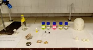 També hem experimentat la quimioluminescència mitjançant la prova del luminol, que és una substància que emet llum blavosa quan hi ha un agent oxidant. Aquesta reacció química s’utilitza en criminologia per detectar traces de sang i va ser molt interessant poder veure aquesta aplicació i relacionar-la amb conceptes com l’oxidació i les reaccions redox.