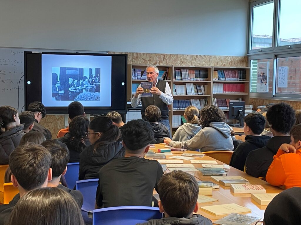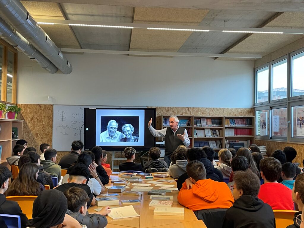 El 2 d’abril l’alumnat de 1r i de 2n ESO vam tenir el privilegi d’escoltar a en Xavier Badia Cardús parlant del seu pare, Antoni M. Badia i Margarit. Va ser una xerrada molt emotiva on vam aprendre moltes coses sobre Badia i Margarit, és a dir, sobre la persona que dona nom al nostre institut. Vam aprendre coses sobre la vida personal d’Antoni M. Badia i Margarit i, sobretot, vam aprendre molt sobre els valors que van impregnar la seva vida. La xerrada va tenir lloc a un lloc ben especial del centre, la nostra biblioteca, i hi vam exposar tot el munt de llibres que tenim sobre Antoni M. Badia i Margarit.