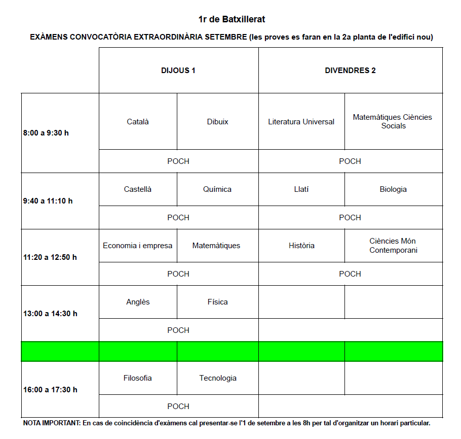 horaris exàmens extr batx