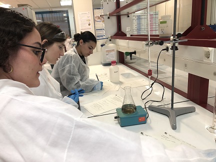 I, finalment, els alumnes del científic van realitzar una pràctica de química, on havien de determinar la duresa de diverses mostres d’aigua, calcular la quantitat de calci dissolt per litre d’aigua.