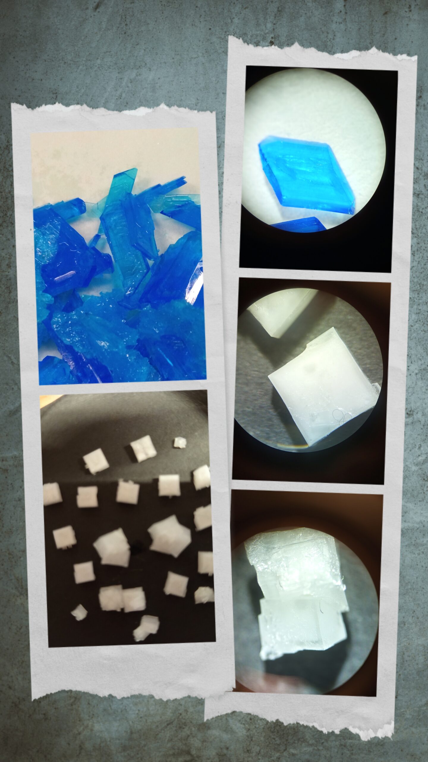 Quan vam observar els cristalls formats amb la lupa, no ens ho podíem creure: petits cubs perfectes de sal i espectaculars cristalls blaus de sulfat de coure que semblaven trets d’un conte de ciència-ficció.