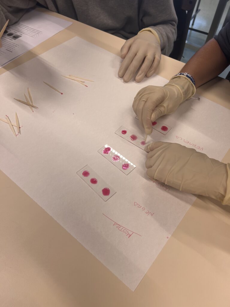 Un altre component fonamental del nostre programa experimental és la pràctica de la determinació de grups sanguinis, que permet als estudiants comprendre aspectes clau de la immunohematologia. Els alumnes utilitzen antisèrums específics per identificar la presència d’antígens A, B i el factor Rh en mostres sanguínies i entendre la importància de la comptabilitat dels grups sanguinis i les transfusions de sang.