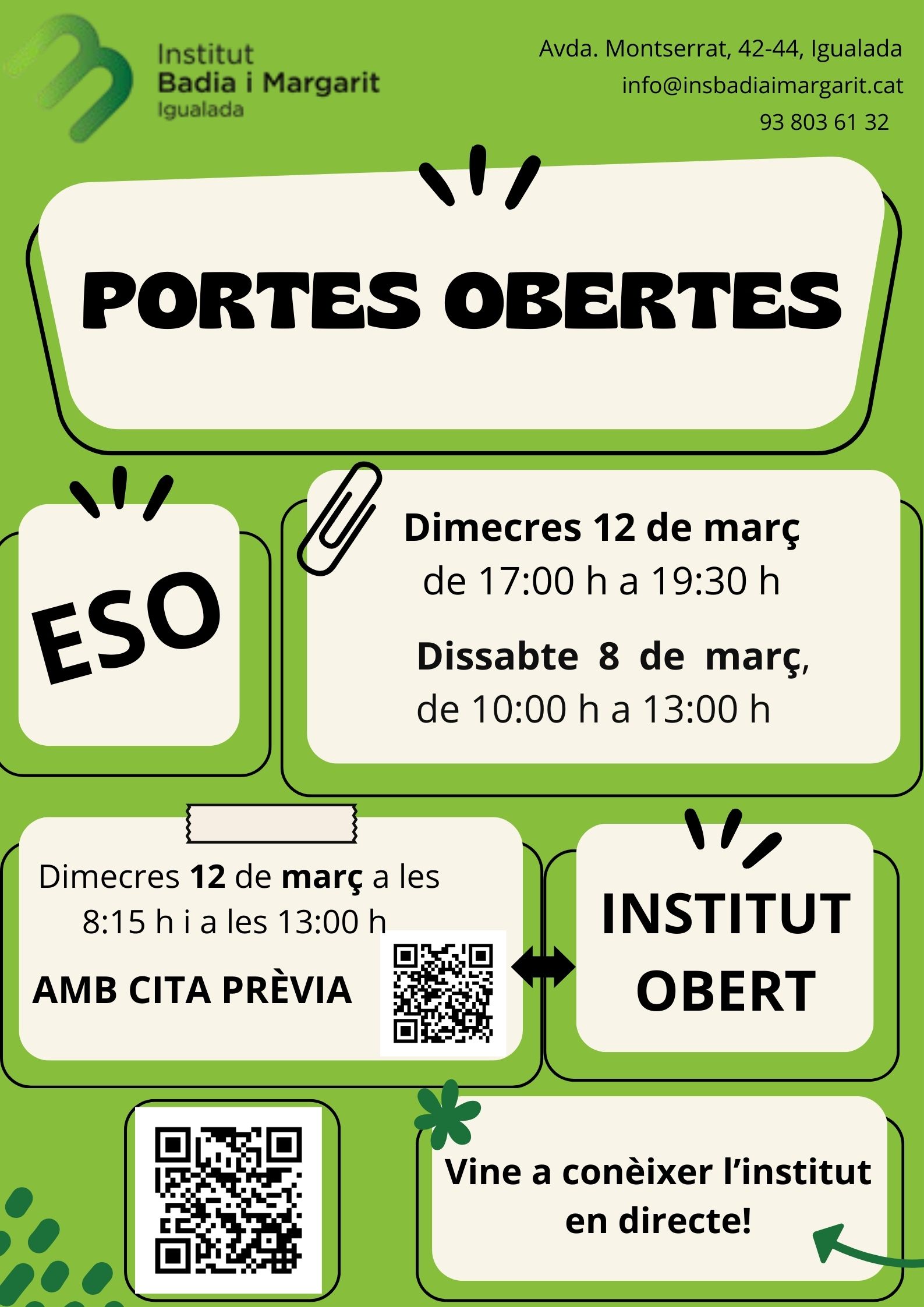 Informació PORTES OBERTES i INSTITUT OBERT. ESO.