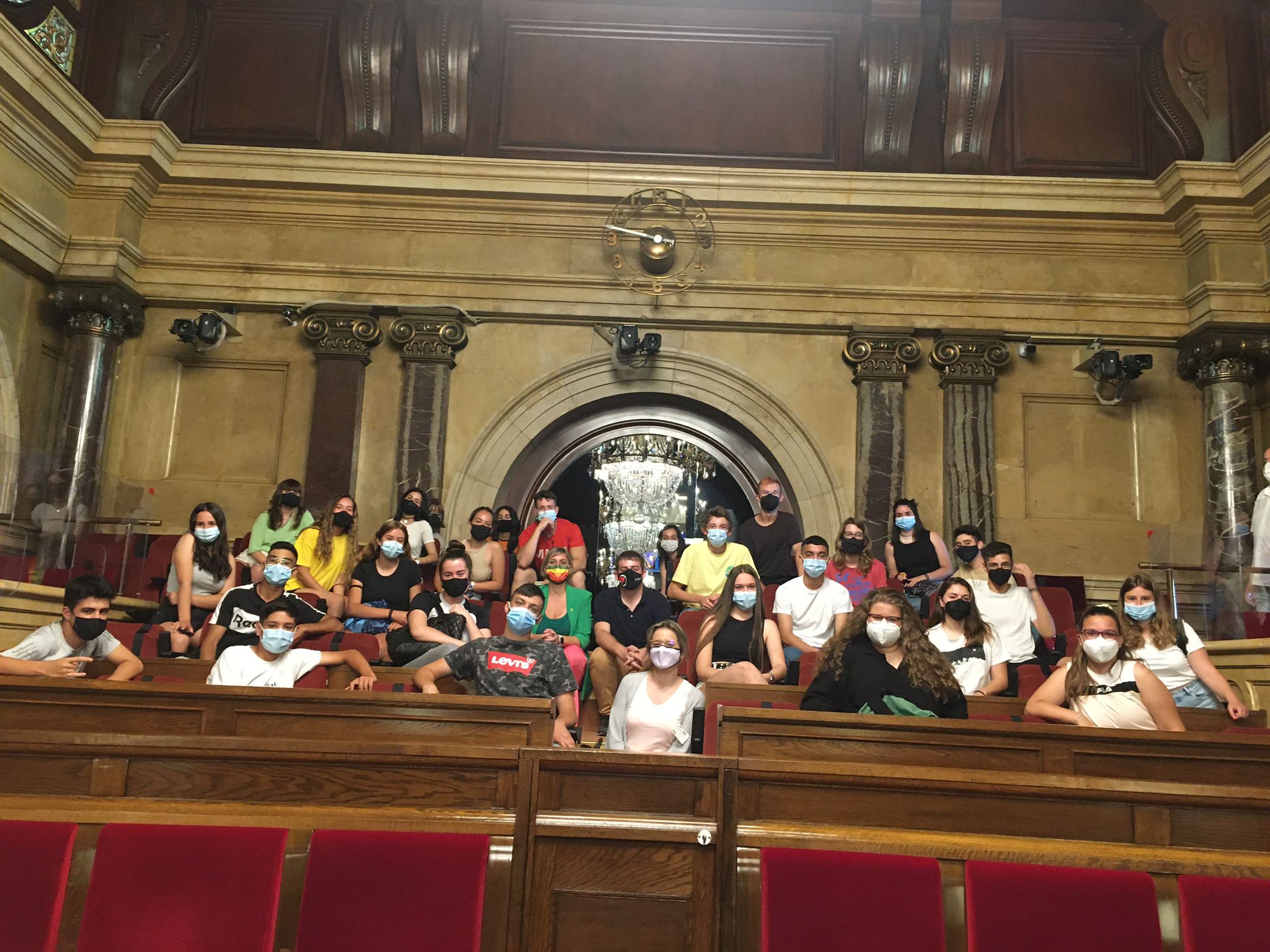 La visita al Parlament va ser d’allò més interessant. A més a més, vam poder gaudir de la presència i companyia de l’Alba Vergés antiga consellera de Salut del Govern de Catalunya i del diputat al Parlament Pau Morales. Vam arribar al Parlament i el guia de la visita ens va fer una petita introducció històrica de la institució a les escales interiors del Parlament que tan veiem a la televisió. A continuació, vam anar a l’hemicicle i allà juntament amb els dos diputats, Alba i Pau, vam poder conèixer el funcionament del Parlament i vam poder discutir sobre democràcia, llibertat i ciutadania. Vam quedar bocabadats de tenir davant dels nostres ulls aquell espai tan mediàtic i que tots coneixem gràcies a la televisió, diaris i xarxes socials.