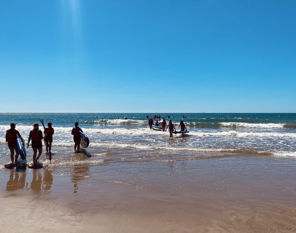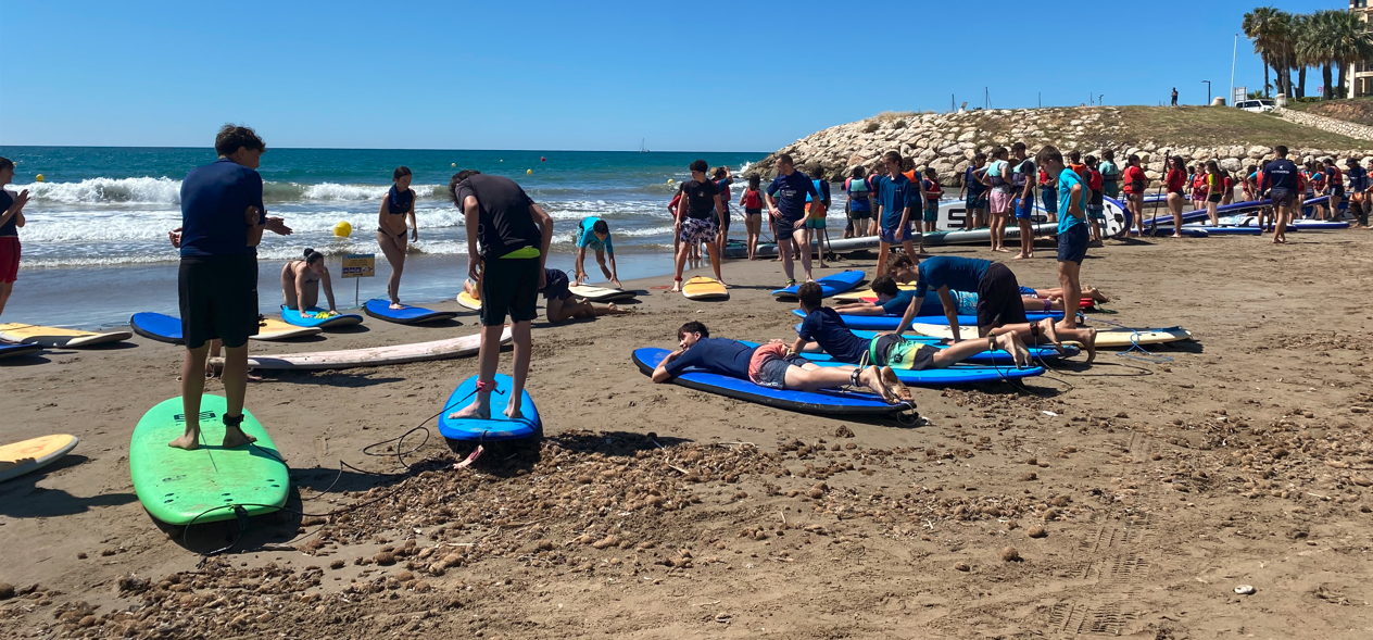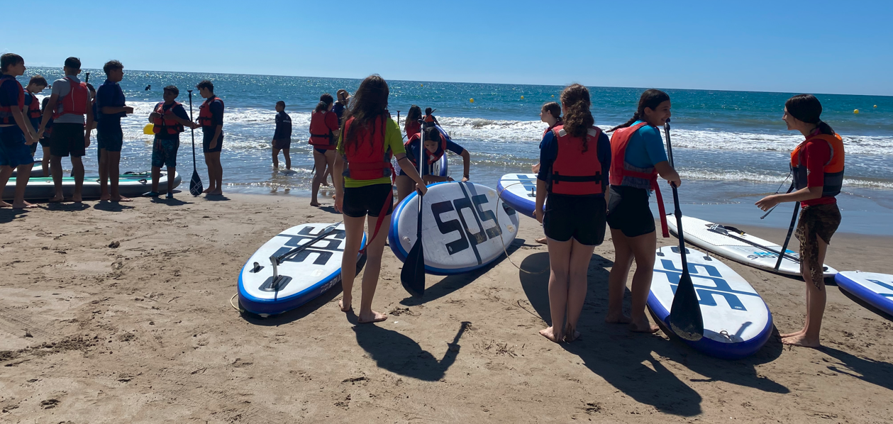 Acompanyats pels monitors del Sitges Beach Club, han fet paddle surf, big sup i surf (alguns amb més traça que d’altres). Alumnes i professors s’han divertit moltíssim i han passat un gran últim dia plegats.